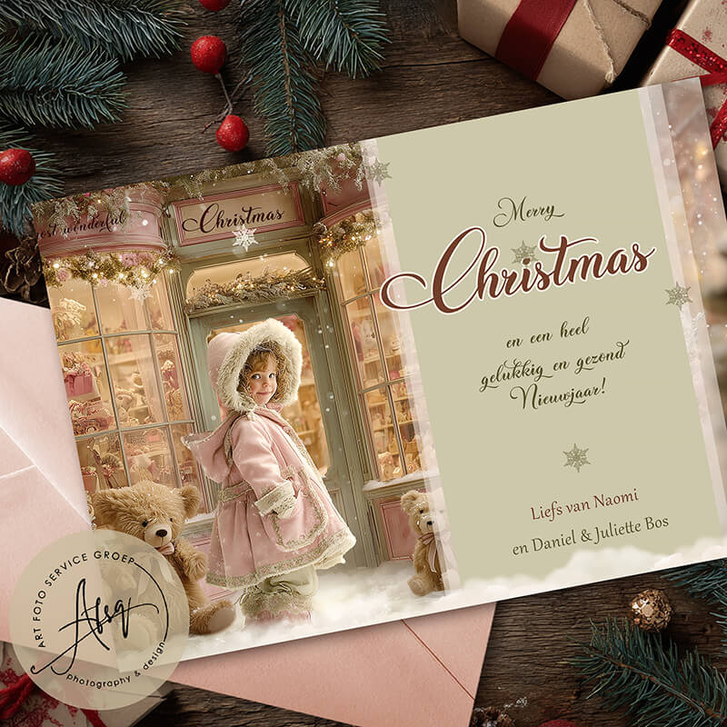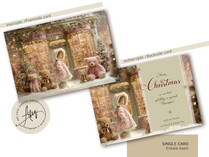 The Christmas Teddy Shop – Sprookjes Kerstkaart met Eigen Foto