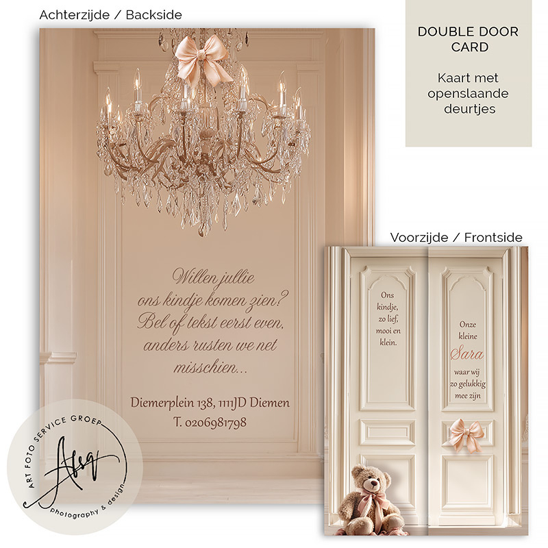 Maak de geboorte van jullie kindje extra bijzonder met dit prachtige Droomgeboortekaartje in nostalgische stijl. Het ontwerp ademt warmte, romantiek en klassieke elegantie: zachte roze tinten, vintage kussentjes met een kroonluchter.