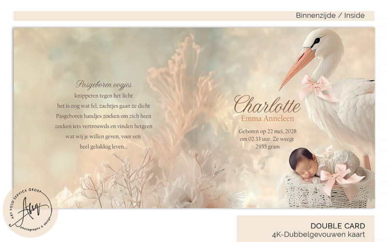 Droom geboortekaart met eigen foto en ooievaar – GB036