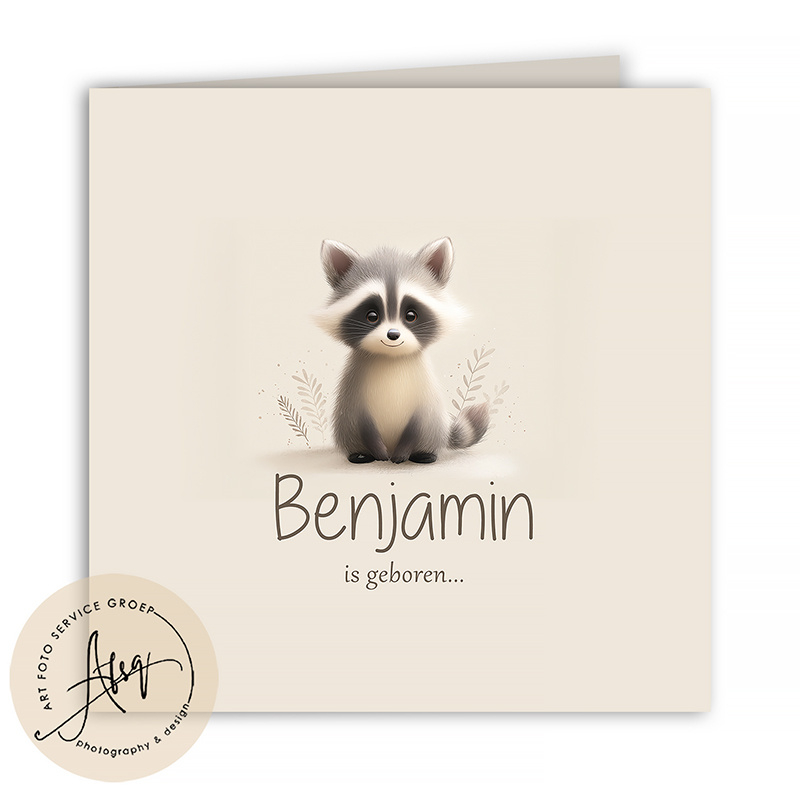 Geboortekaartje met foto met een baby wasbeertje - FGB601Geboortekaartje met Foto – Lief Ontwerp met een klein wasbeertje