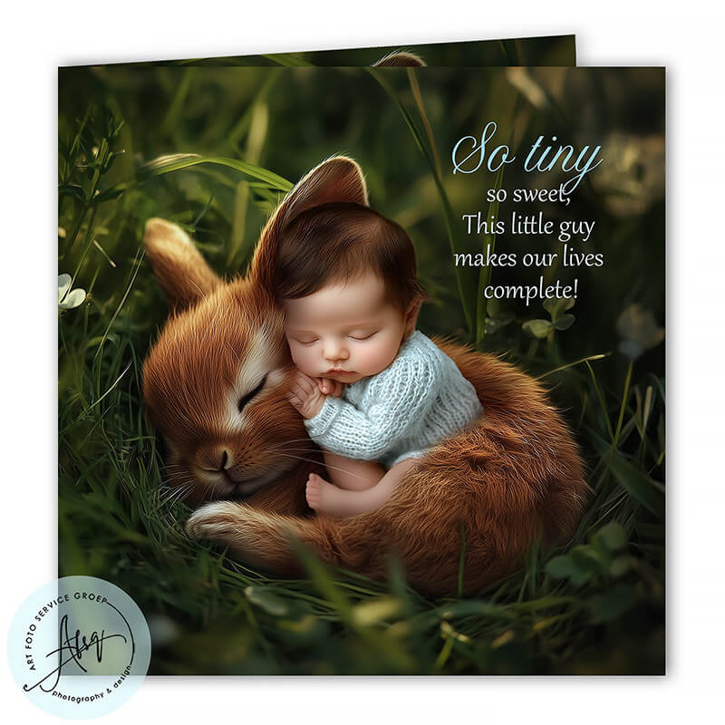 De geboorte van jullie zoon is een bijzonder moment dat vraagt om een kaartje met uitstraling. Onze droom geboortekaartjes voor jongens combineren dromerige achtergronden met stoere én lieve details. Wij bewerken de foto van jullie baby professioneel in het ontwerp, zodat het lijkt alsof hij écht in deze magische setting is gefotografeerd.