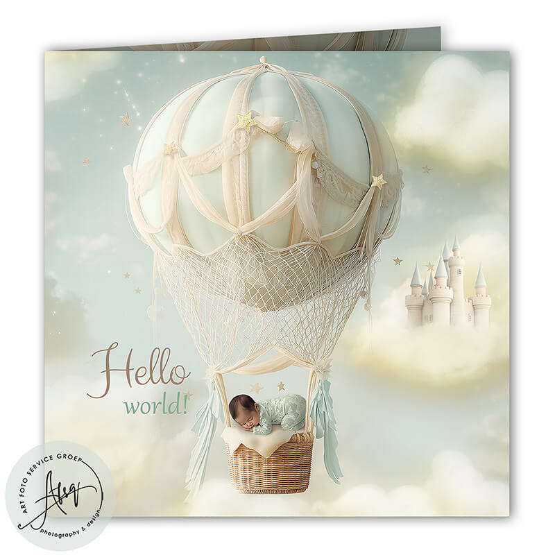 Droom geboortekaartje met eigen babyfoto in luchtballon - GB030Sprookjes geboortekaartje met foto met eigen babyfoto in luchtballon
